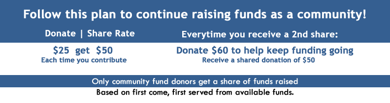 My Community Fund provides a monthly donation plan to help raise and share funds as a community. Proud Supporters: Past Recipients of First Round & Testimonals Past Campaigns: What is Crowdfunding?